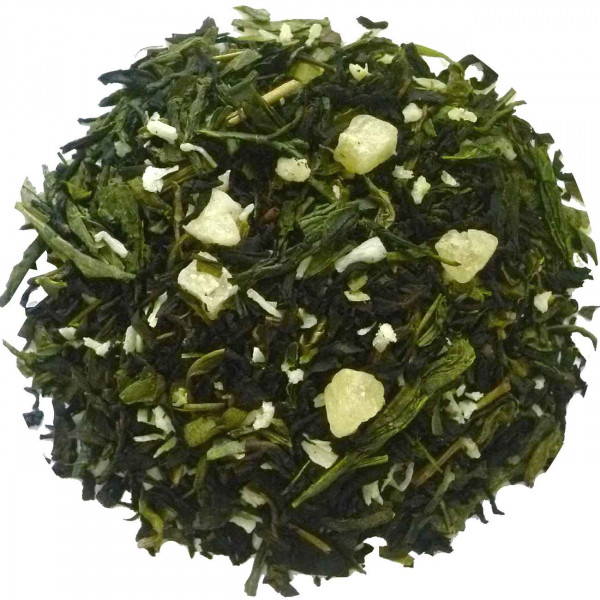 Gearomatiseerde zwart-groene theemelange met een tropische fruitsmaak. Op zoek naar verfrissing? Er is nog nooit zoiets cools geweest! En iets warms is nog nooit zo cool geweest! Ingrediënten: groene thee, zwarte thee, kokosvlokken, ananas (suiker, ananas, antioxidant: citroenzuur), aroma.