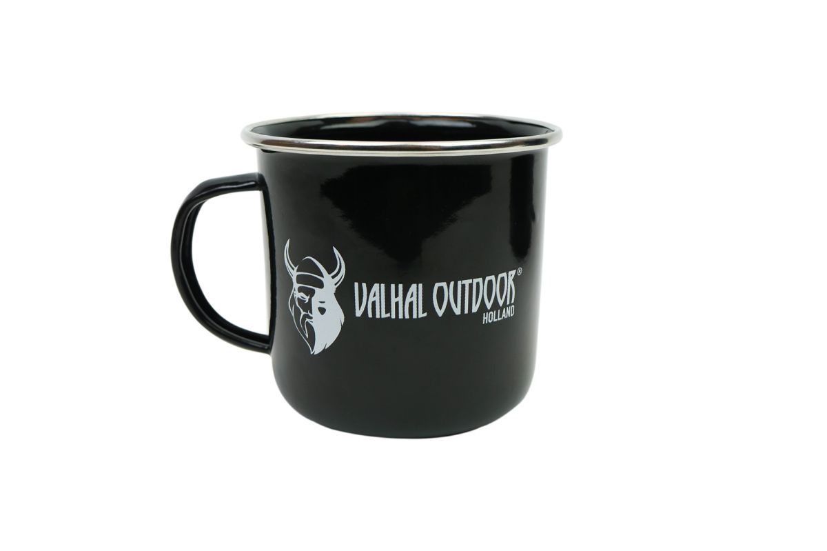e Valhal Outdoor mok heeft een royale inhoud van 400ml en heeft een klassiek, maar toch tijdloos design. Een mok met een stoere uitstraling. Doordat de mok van geëmailleerd staal gemaakt is, gaat hij niet gemakkelijk stuk en is hij ideaal om mee te nemen tijdens het kamperen. De mok past perfect bij de VH1.7P Percolator van Valhal Outdoor.